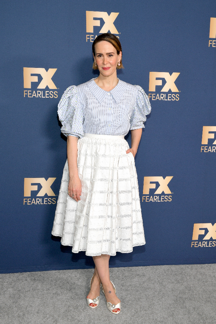 Sarah Paulson, ‘Starn Walk Winter Press Tour 2020’ etkinliği için Miu Miu ‘nun Resort 2020 koleksiyonundan bir kıyafet giydi.