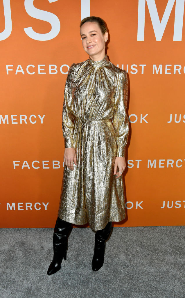Brie Larson, ‘Just Mercy’ filminin Los Angeles gösterimine Celine’in İlkbahar Yaz 2020 koleksiyonundan altın rengi metalik bir elbise giydi.