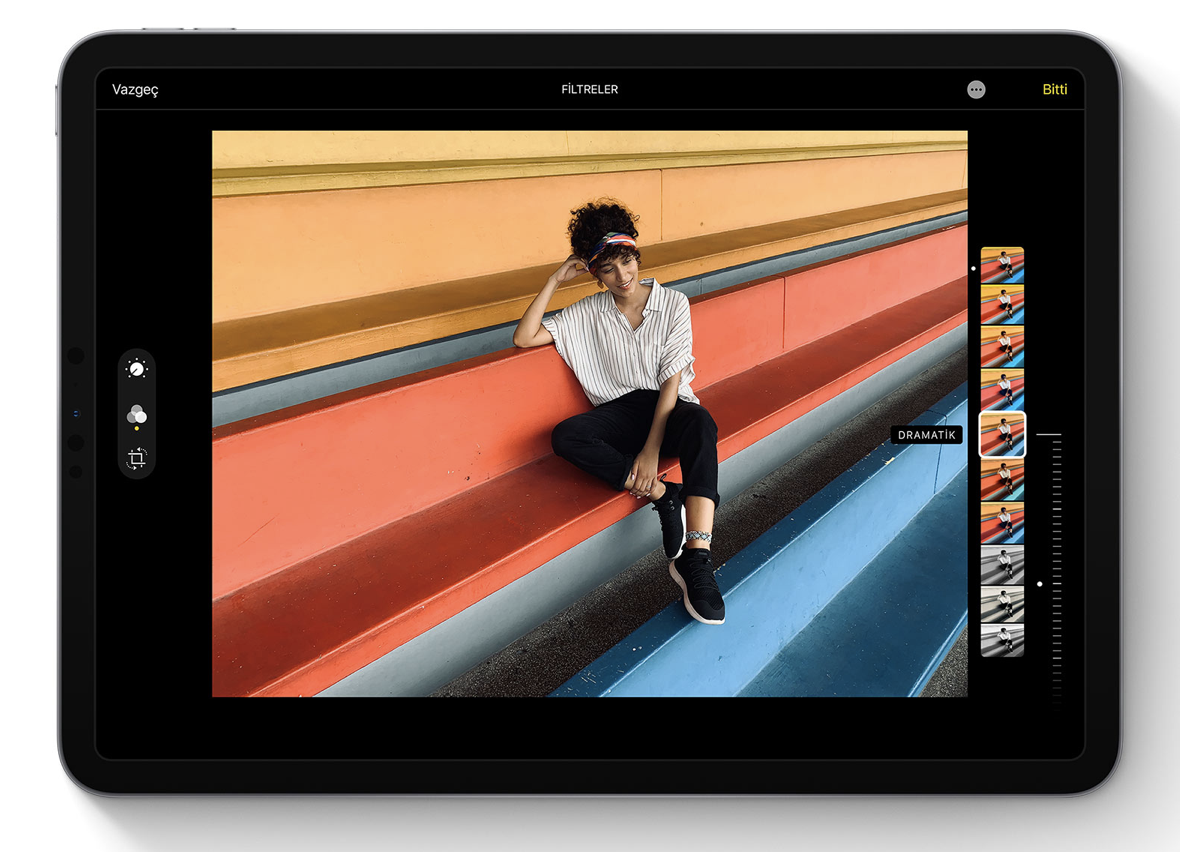 Çektiğiniz fotoğraf ve videoları düzenlemek için Düzenle’ye dokunun ve birçok düzenleme seçeneğini kullanarak fotoğraf ya da videonuzu çok daha etkileyici hale getirin. Düzenleme seçenekleri ile fotoğraflarınıza gelişmiş renk ayarları yapabilir, filtreler, metinler ve emojiler ekleyebilir, kırpma ya da döndürme yapabilirsiniz.