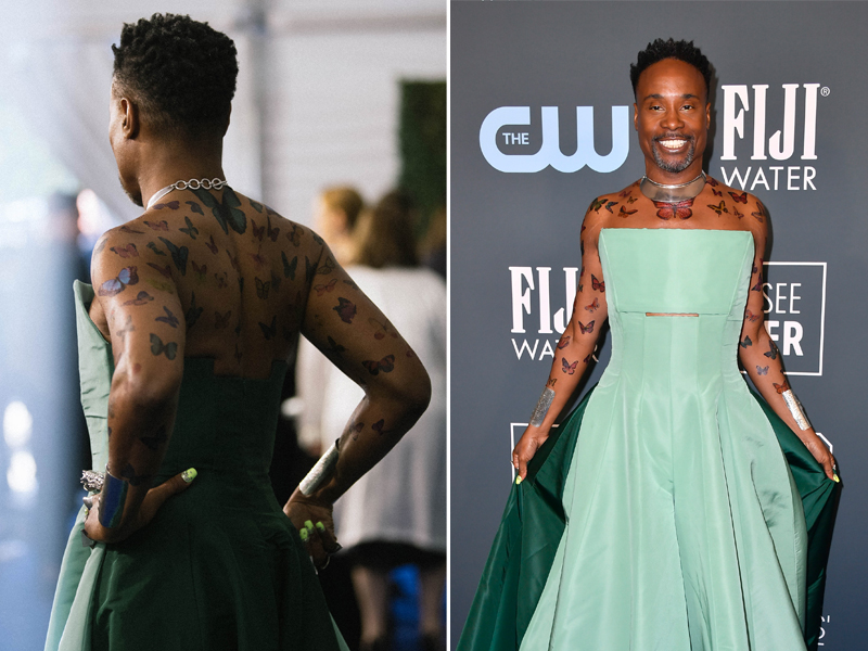 Billy, Altın Küre Ödülleri'nde tüm Victoria's Secret meleklerini sollayacak tüylü pelerini ile adeta bir melek gibi gözüküyordu. Şimdi ise, 2020 Critics Choice Awards mavi halısında kanatlara yer vermeyi tercih etti.