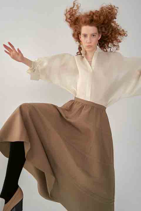 2020 ilkbahar-yaz koleksiyonunda sadece ipek kumaşlar var. Bolca şantuk ve organza kullandık. Canlı renkler ve eğlenceli siluetler dikkat çekiyor, ve hep kadınsı.