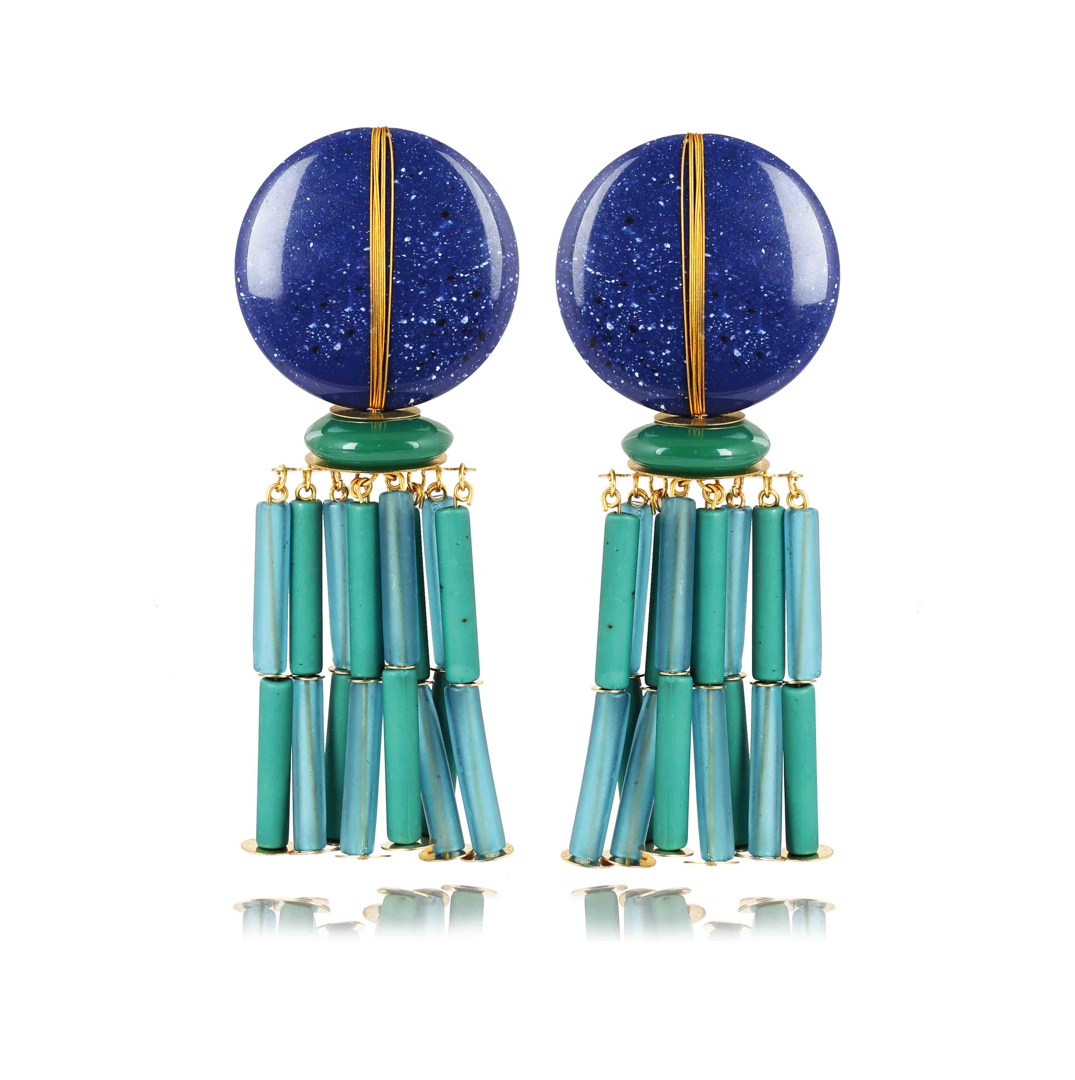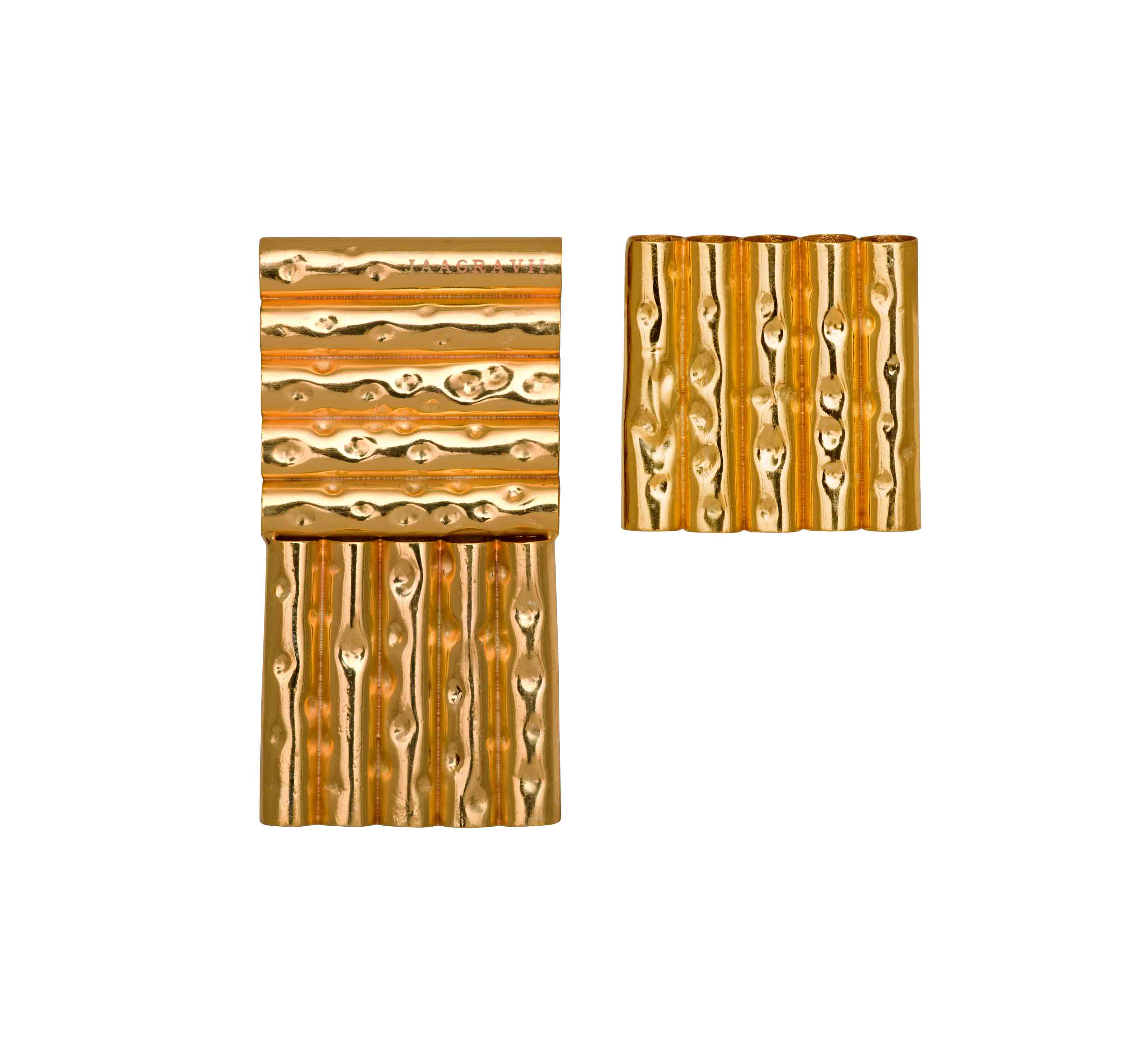 Geometrik formlardaki gösterişli küpeler formları, renkleri ve uyandırdıkları duyguyla, Hintçe parlak ve aydınlanmış anlamına gelen Jaagravii’nin felsefesini çok iyi yansıtıyor.