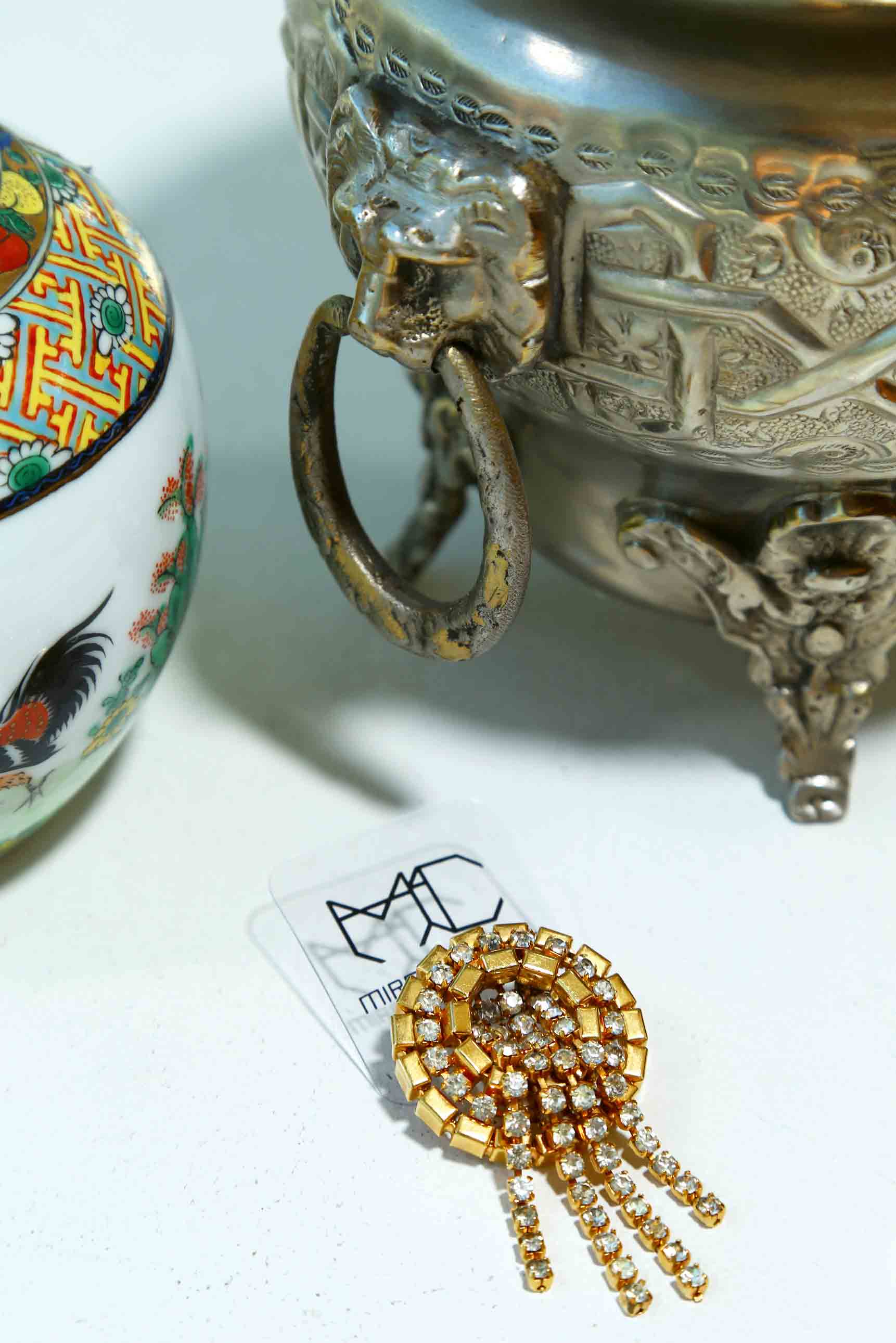 En etkilendiğim parçalardan biri 1920’li yıllara ait olan, turkuaz taşlı ve incili el yapımı broştu. Bir diğeri ise 1940’lı yıllara ait kesme kristal taşlı çok farklı bir teknikle örgü metallerle süslenmiş saç iğnesi. Hâlâ son sahibini bekliyor.