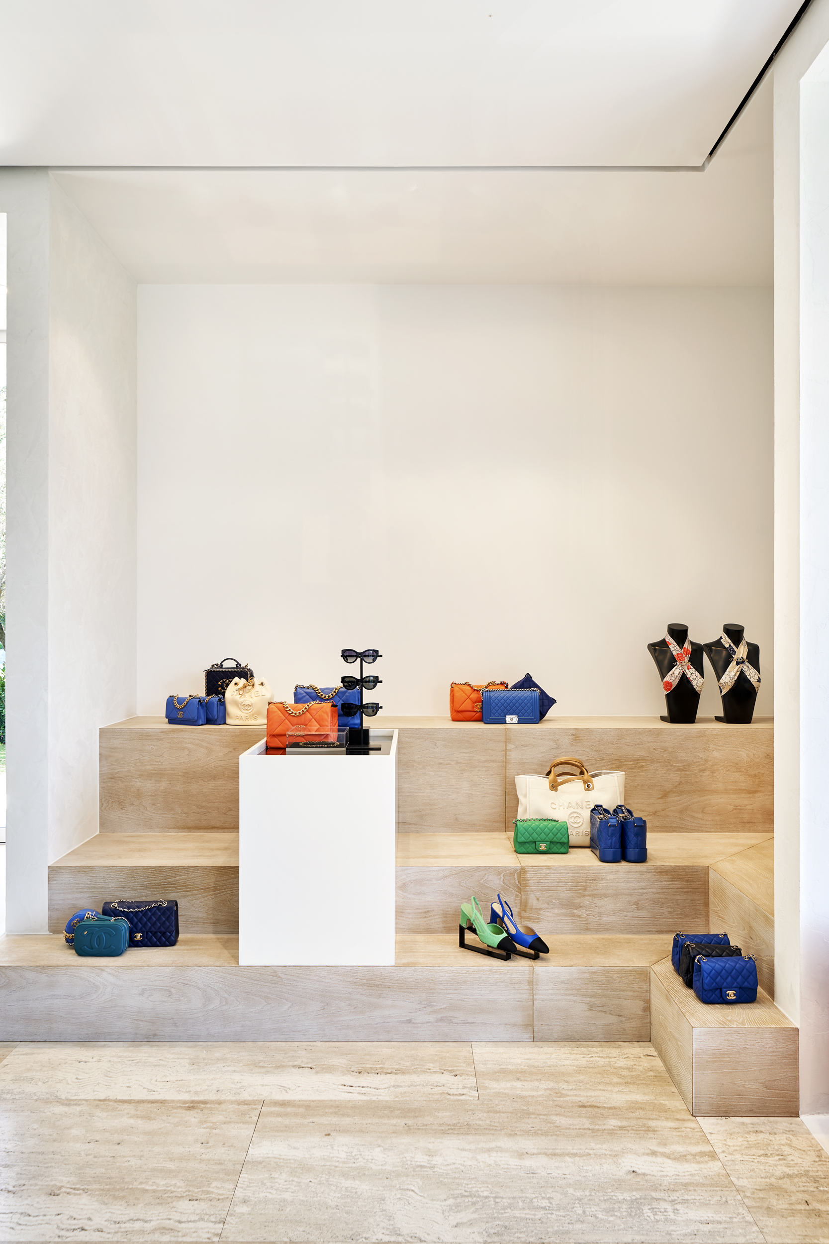 Müşterileri, mağazaya girişte ikonik Coco Beach de Chanel koleksiyonundan eğlenceli ve sportif parçalar karşılıyor. Koleksiyon, moda evinin zamansız zarafetine atıfta bulunan Métiers d'Art 2019/20 koleksiyonundan sofistike stillerin yanı sıra, 2020 İlkbahar-Yaz hazır giyim koleksiyonundan parçalar da içeriyor.