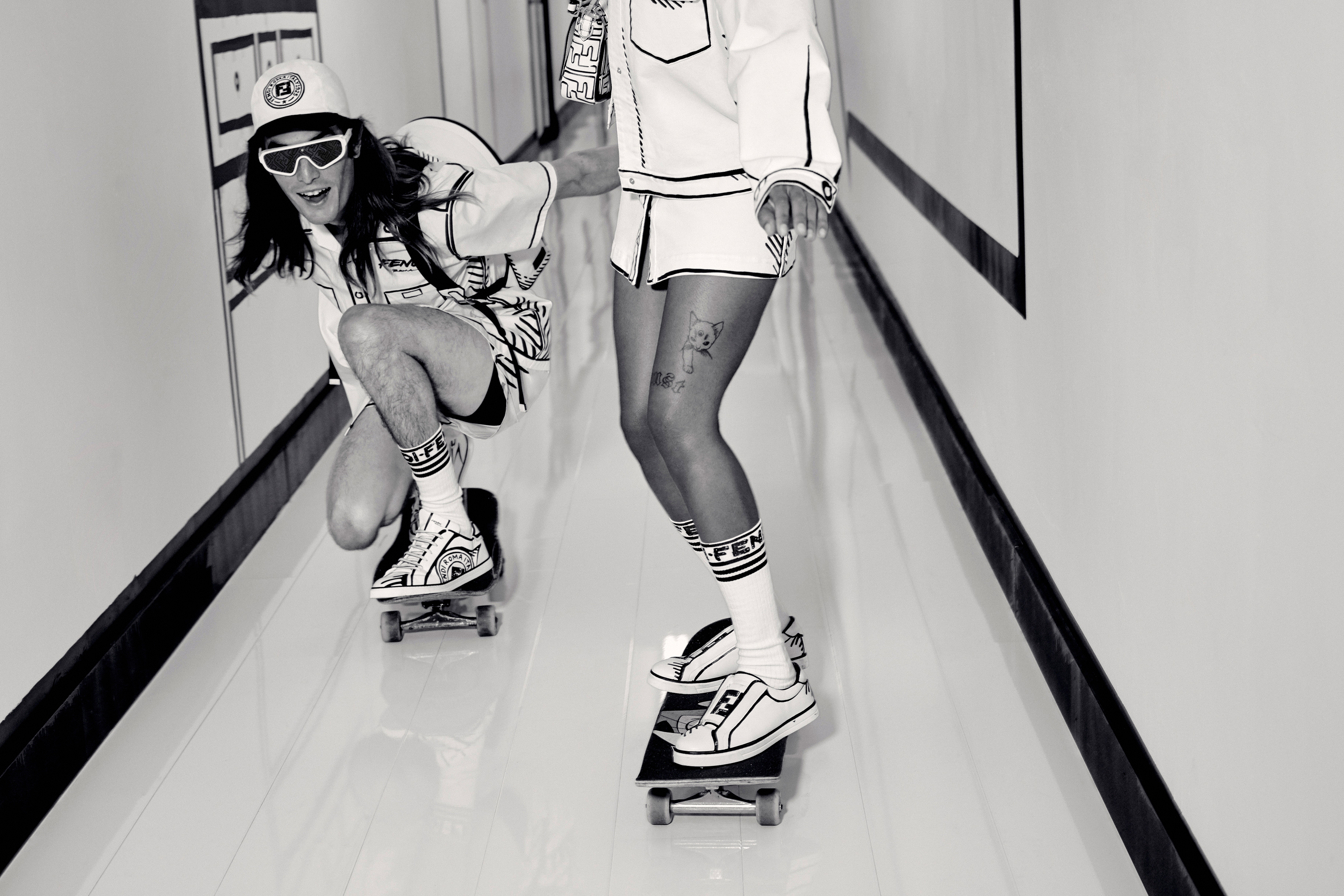 Ayrıca, canlı, tuhaf bir çiçeğin motifini yeniden yorumlayarak Fendi baskısını ve ikonik FF logosunu yeniden yarattı. Yeni logo, Roma gökyüzünün tonlarından esinlenen, karikatürize bir görünüme sahip.