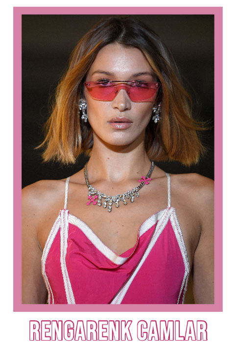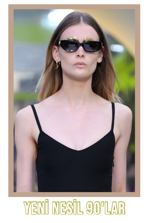 Geçtiğimiz sezonlarda incecik Matrix filminden esinlenen güneş gözlükleri kelimenin tam anlamıyla dört bir yanımızı sarmıştı! Influencerlardan ünlülere kadar herkesin benimsediği incecik gözlükler ne kadar havalı görünse de bir o kadar kullanışsızdı… Neyse ki bu sene 90’lar esintisi çok daha kullanışlı bir forma bürünüyor. Dikdörtgen formlu kalın çerçeveli ince güneş gözlükleri, gözlerinizi güneşten korurken aynı zamanda 90’lar ruhunu günümüze taşıyor. 90’lar süper modellerinin vazgeçemediği bu kalın çerçeveli gözlükler 2020’de bizim de olmazsa olmazlarımız arasında.