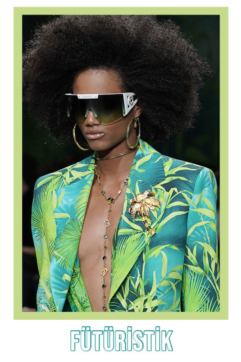 Bu gözlükler gelecekten bize haberler getiriyor! Fütüristik esintili güneş gözlükleri sadece Yaz 2020’ye özel bir trend değil. Geçtiğimiz senelerde de gördüğümüz bu gözlük tarzı Rihanna’nın Dior ile yaptığı işbirliği sayesinde daha da popüler hale gelmişti. Şimdilerde kayak gözlüklerini andıran fütüristik güneş gözlükleri, kocaman çerçeveleri ve aynalı camları ile sizi gelecekten gelen bir figüre dönüştürüyor. SpaceX uzaya gönderilmişken, doksanların uzay yarışı trendinin 2020’de yeniden başlayacağını öngörüyoruz!