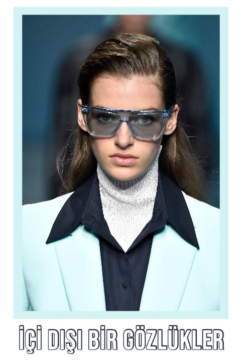 İçi dışı bir insanları çok seviyoruz! Yaz 2020’de içi dışı bir aksesuarlara da bayılıyoruz. Birkaç sene önce ayakkabılarda ve çantalarda görülen transparan trendi artık güneş gözlüklerinde. Transparan asetat çerçeveler ile bezenen güneş gözlükleri, batik desenli kıyafetler ile harika bir uyum sağlıyor. Adeta bulutlu bir gökyüzünü andıran bu eğlenceli gözlük trendi, Yaz 2020 defilelerinin de gözdeleri arasında yer almıştı.