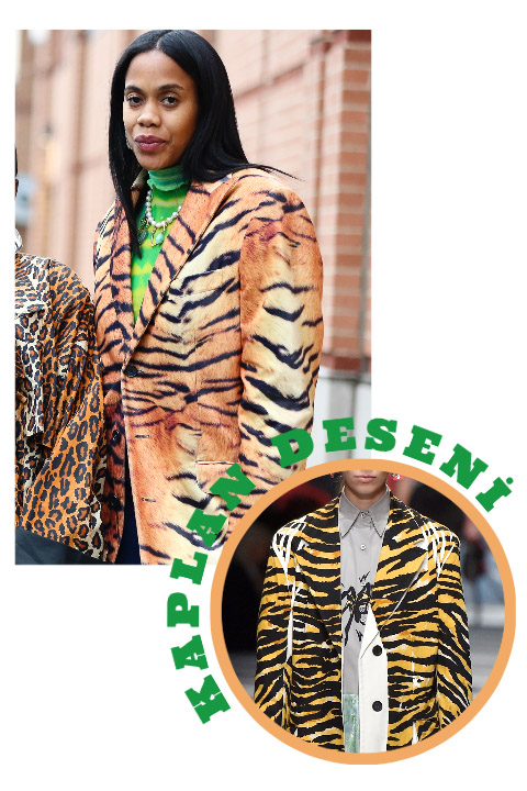 Zebra desenleri ile karıştırılabilen kaplan deseni, en yeni vahşi desen trendlerinden biri. Turuncu ve siyah renklerinin yanı sıra neon renkler ile tasarlanan bu yeni vahşi desen trendi göz alıcı bir tarz yaratmak için ideal. Kaplan desenleri ile Winnie the Pooh çizgi filmindeki Tigger karakterinden ilham alıyoruz!