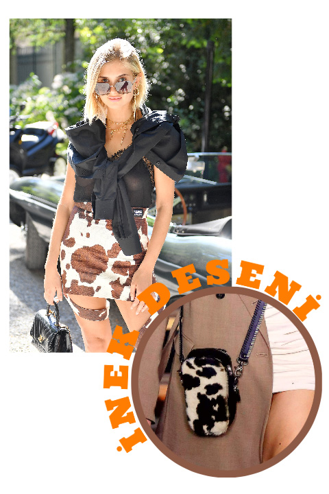 Vahşi desen trendleri arasına en son katılan desen: inek! Kulağa pek de ‘trend’ duyulmayan inek desenleri düşündüğünüzden daha havalı tarzlar yaratıyor. Vahşi batı ve vahşi desen trendlerini harmanlayan inek desenleri, Kendall Jenner’dan Emily Ratajkowski’ye kadar birçok ünlünün sokak stillerini süslüyor. Bir de kovboy botları ile tamamlanınca inek desenleri ile sokakların alternatif kovboy kızı olabilirsiniz!