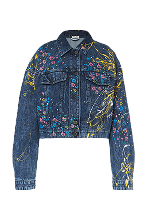 Çiçek ve Boya Desenli Denim Ceket, MIU MIU miumiu.com