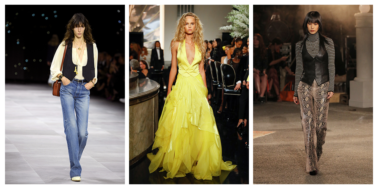 İki parçalı takımlarla ilişkimiz üçleniyor! Vintage stillerin vazgeçilmezi olan yelekli takımlar, İlkbahar 2020 defilelerinde belirerek bizi şaşırtmıştı. Daha sonra Bella Hadid ve Blake Lively’nin stillerinde gördüğümüz takım yelekleri, davetlerin yeni favorisi haline geldi. Kumaş yelekler ile beraber jean ve deri yelekleri gördüğümüz yeni sezonda ister takım elbiselerle ister jean pantolonlarınızla bu stili deneyebilirsiniz.