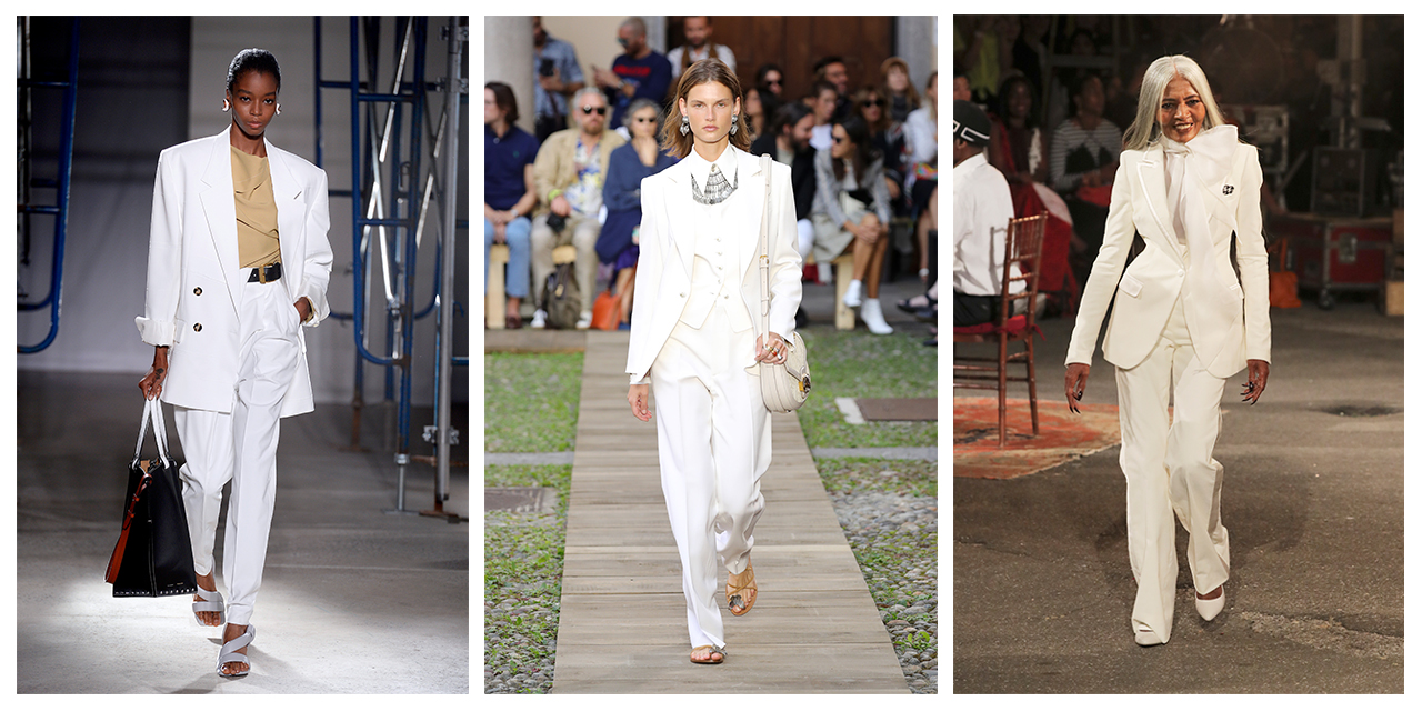 Beyaz takım elbiseler gözünüzü korkutabilir. Genelde oldukça nadir tercih edilen beyazlar, İlkbahar 2020’nin öne çıkan renkleri arasında. Kemik ve beyaz renklerde görülen takım elbiseler, oldukça sofistike ve şık bir görüntü yaratıyor. Keten veya hafif kumaşlı beyaz takım elbiselerinizi cesur renkli aksesuarlar ile tamamlayarak göz alıcı stiller yaratabilirsiniz.
