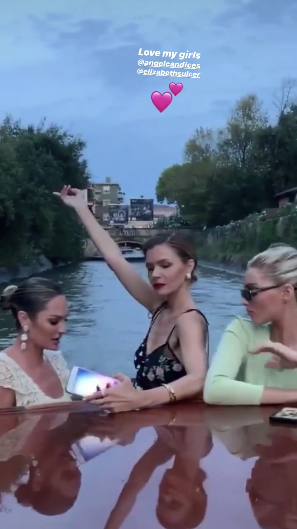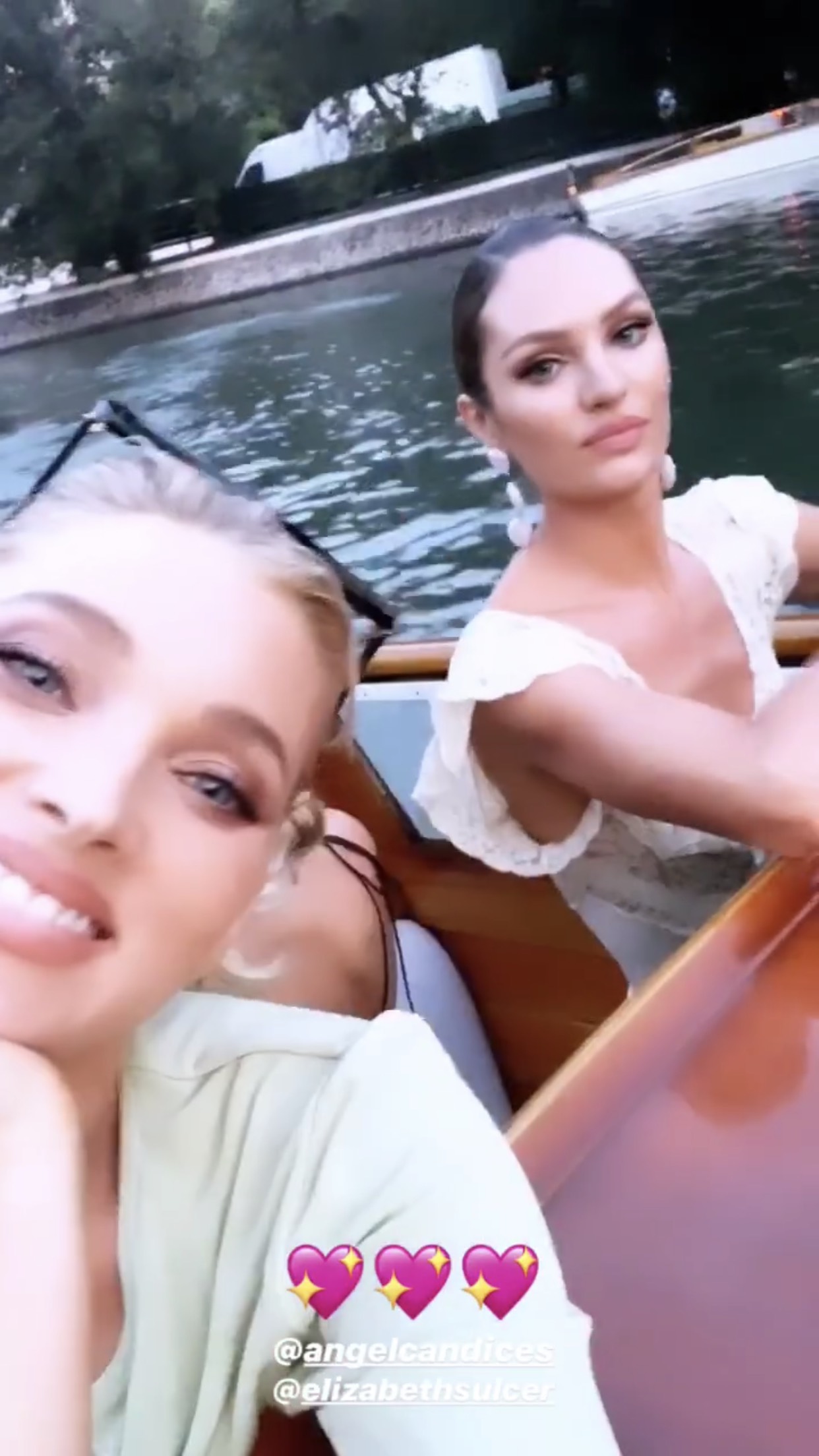 Festivalin ardından, Candice Swanepoel ve Elizabeth Sulcer ile Venedik'te yemeğe ve gondol ile gezintiye çıkan güzel model, bu anları Instagram hikayesinde paylaştı.