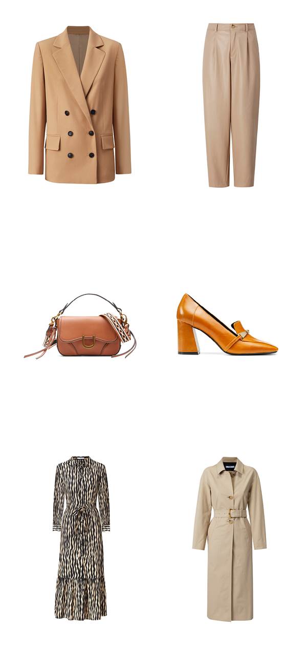 Midi elbiselerde, takımlarda veya eteklerde ve deri pantolonlarda odak noktamızda toprak tonları var. Bu renk trendine katılan aksesuarlarda, kısa saplı çantalar, mule ayakkabılar ve 70’li yılları hatırlatan carey-stili güneş gözlükleri var.
