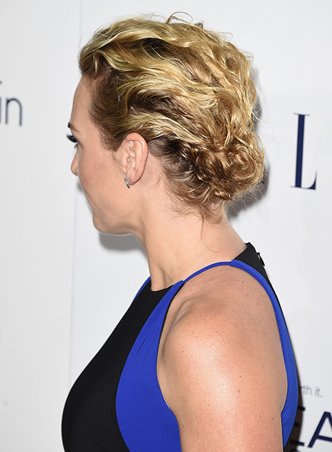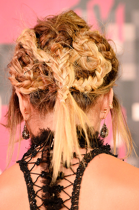 Olivia Wilde’ın ensede toplanan küçük örgü topuzu.
