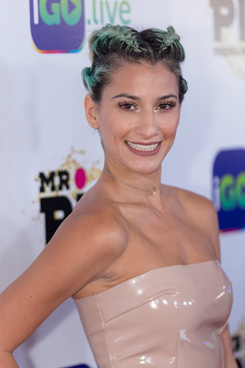 Lexy Panterra örgülerini mavi renge boyayarak gözleri üzerinde topluyor.
