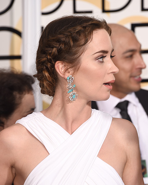 Emma Stone saçlarının arkasında ördüğü saçlarını örüp topladığı saçları ile kusursuz görünüyor.