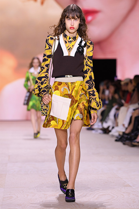 Vintage desenler sadece etek modellerinde görülmüyor! Elbise, bluz ve pantolonlarda görülen vintage desenler, sezonun favori desenleri arasında diyebiliriz. Babaannenizin perdelerini andıran çiçek desenlerinin yanı sıra 60’lar esintili geometrik desenleri gördüğümüz Yaz 2020 sezonunda, etekler eski sandıklardan çıkmış gibi görünüyor. Topuklu loaferlar veya asimetrik bantlı sandaletler ile eşleştirebileceğiniz vintage desenler, geçmişe övgü sunuyor.
