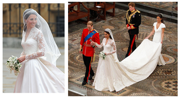 2011'de Prens William ile düğünlerinde, Alexander McQueen imzalı bir gelinlik giyen Kate belki de dünyanın en ünlü gelinliğini giydi. İngiltere'nin gelecekteki kraliçesi Kate'in gelinliğinde sırasıyla İngiltere, Galler, İskoçya ve Kuzey İrlanda'nın ulusal çiçekleri olan gül, nergis, devedikeni ve yonca işlemeleri bulunuyordu. Gelinlikte aynı zamanda “mavi bir şey” geleneğine uymak için küçücük mavi bir kurdele de vardı.