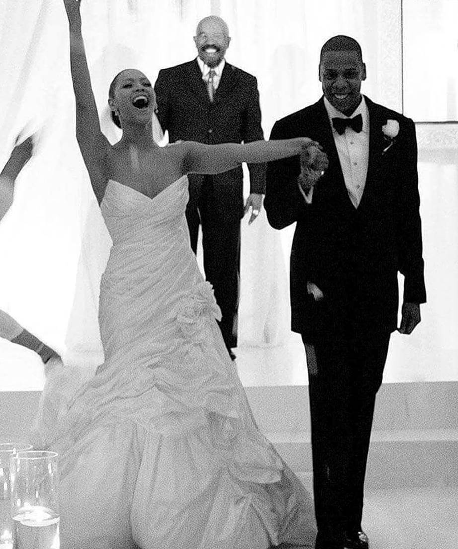 Bir tanrıça olduğuna inandığımız Beyoncé'ye zaten ne giyse yakışıyor ancak, şarkıcı 2008'de Jay-Z ile oldukça gizli düğünlerinde klasik beyaz straplez bir gelinlik giymeyi tercih etti.Bu gelinliğin en büyük detayı ise, annesi Tina Lawson tarafından tasarlanmasıydı.