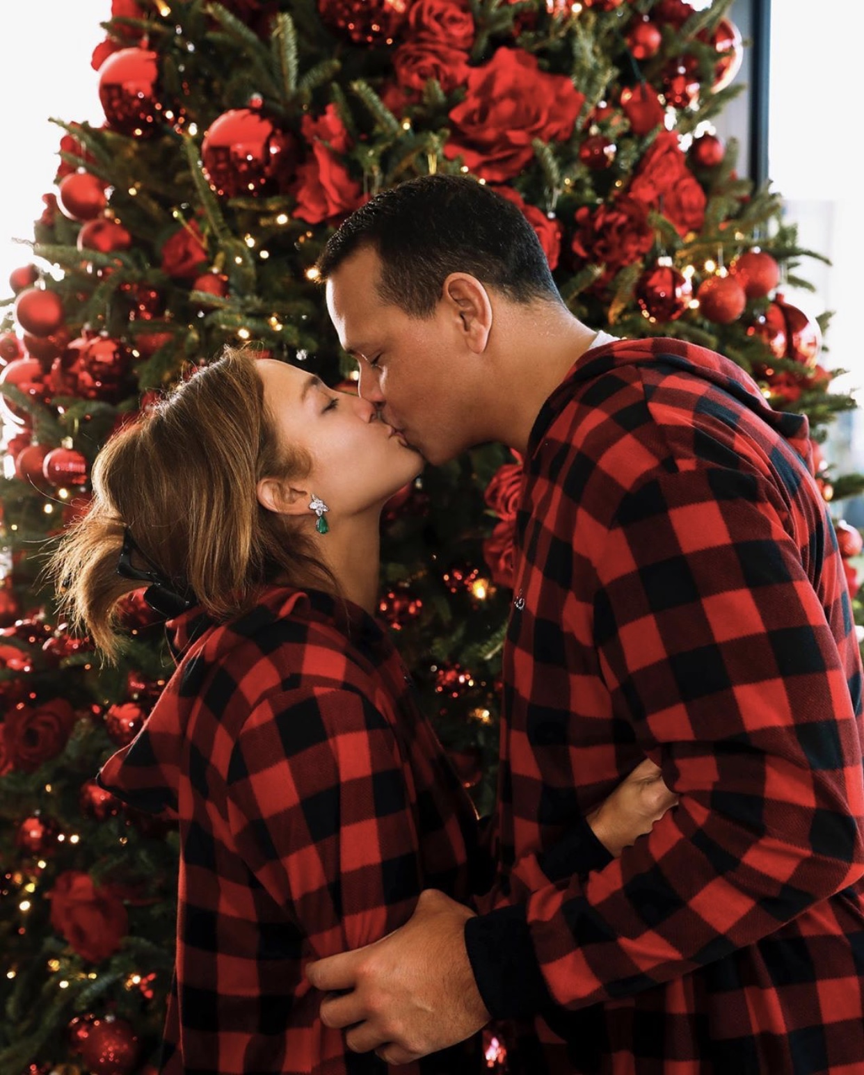 Jennifer Lopez ve Alex Rodriguez çifti, geleneksel noel temalı bir yılbaşı ağacı tercih etmiş.