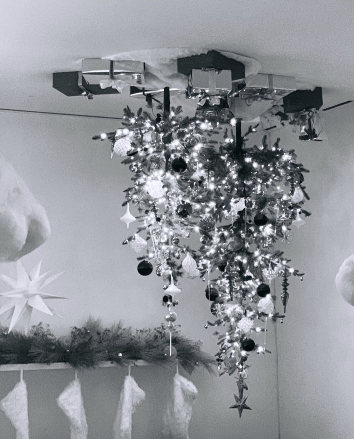 Ariana, tavandan aşağı sarkan tepetaklak bir yılbaşı ağacı seçmiş bu sene için.