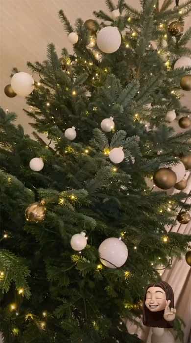 Kim ise, kardeşi Kylie'ye kıyasla daha sade ve normal boyutta bir ağaç tercih etmiş bu sene.