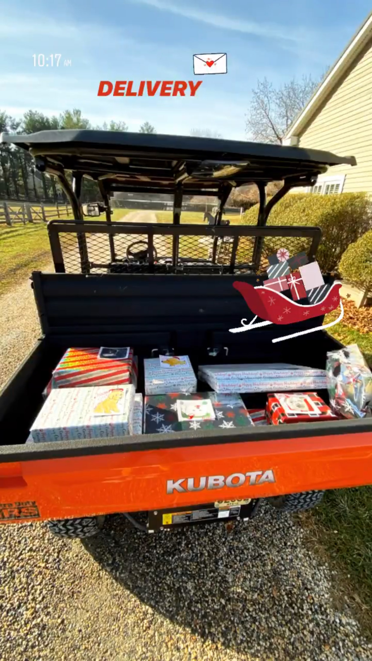 Bella ve Gigi, aileleriyle birlikte geleneksel bir noel kutlaması yaptı. Bu sene hediyeleri ağacın altına değil bir traktöre koydular.