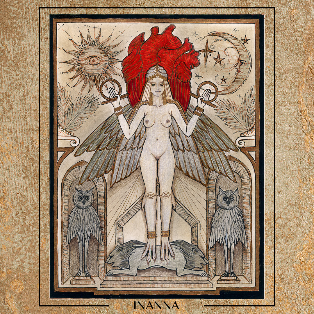 İnanna: Sümerlerin aşk ve bereket tanrıçası İnanna, yüzyıllar boyu Mezopotamya ve Anadolu’da birçok kadın tanrıça siluetinde karşımıza çıkmıştır. Verimlilik, cazibe ve güzellik yanında bilgelik ve gücü simgeler.